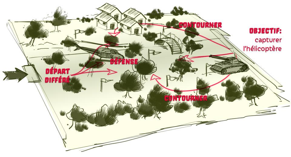 Nous l’avons voulu assez couvert de zones furtives et diversifiées permettant des parties d’approches lentes en créant la surprise d’un contournement ….